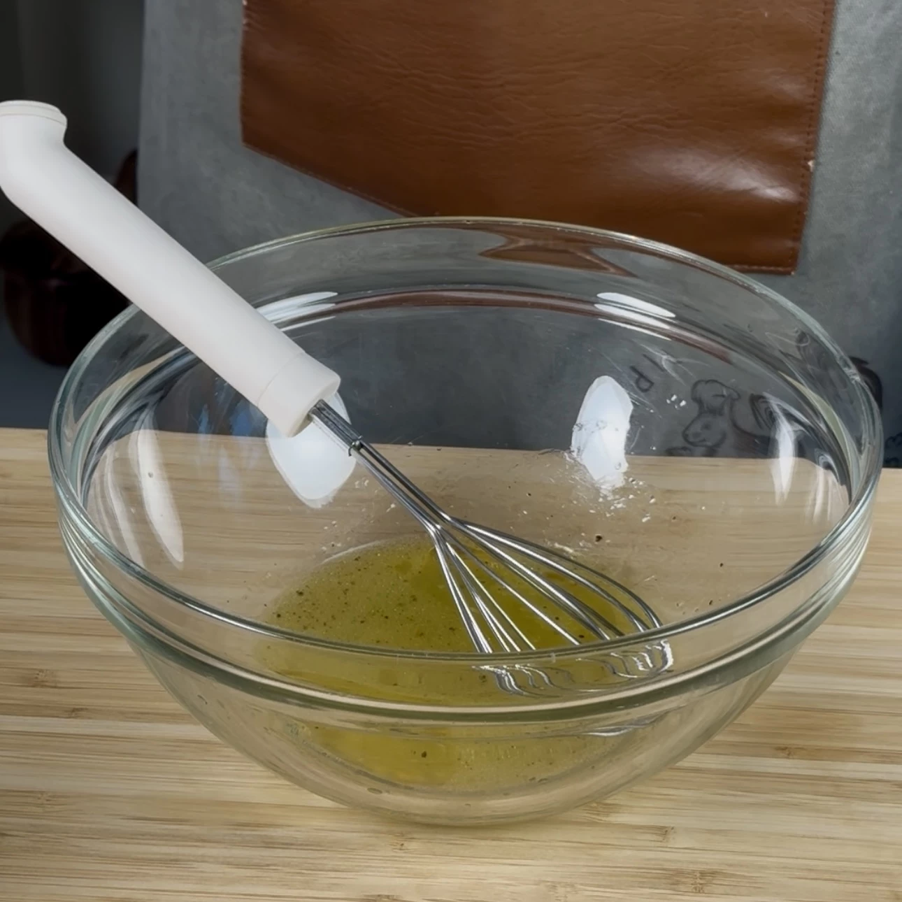 Poi prepara la citronette: spremi il succo di un limone intero in una ciotola, aggiungi dell’olio extravergine d’oliva, sale e pepe ed emulsiona con una frusta fino a ottenere un condimento leggero e profumato.