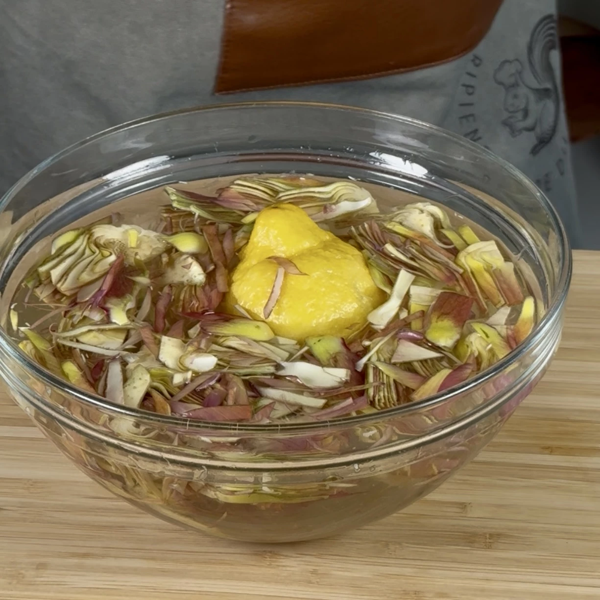 Lava i carciofi ed elimina le foglie esterne più dure. Taglia il gambo e le punte, poi dividili a metà ed elimina la barba interna. Strofina subito la superficie con mezzo limone per evitare che anneriscano e affettali molto sottilmente. Immergili in una ciotola con acqua e il succo dell’altra metà del limone.
